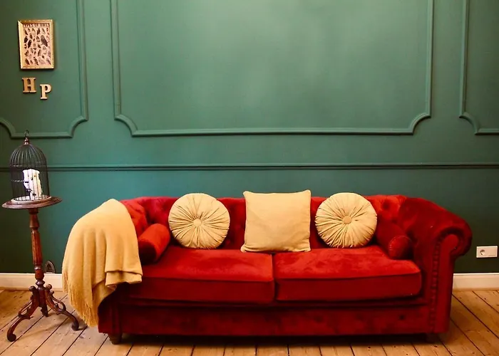 The spacious Zauberhafte Wohnung Mit Hogwarts-Feeling Und Terrasse Duisburg is nestled in the Hochfeld district, an 8-minute walk from the restaurant La Savi Caffe Restaurant. This apartment features Wi-Fi throughout the property.